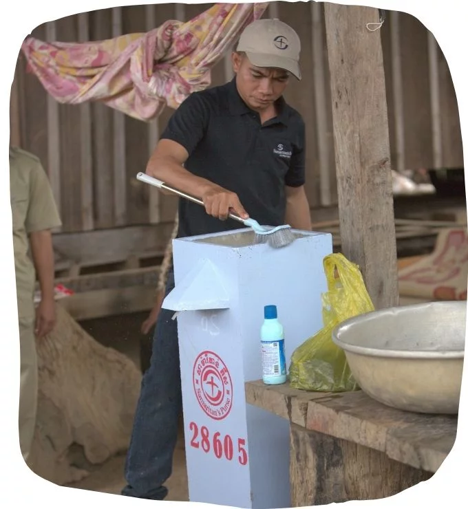 In diese Hoffnungslosigkeit der Insassen tritt eines Tages Sann*. Er ist Pastor einer kleinen Dorfgemeinde im Nordwesten Kambodschas. Er weiß, was es heißt, kein sauberes Wasser oder eine funktionierende Toilette zur Verfügung zu haben. Viele Familien in seinem Dorf schöpfen Wasser aus einem nahegelegenen Gewässer. Die braune Brühe, die eigentlich schon ungenießbar aussieht, wird dennoch zum Kochen, Trinken und Waschen verwendet. Denn eine Alternative gibt es nicht. Durchfall, Erbrechen und schwere Krankheiten setzen besonders den Kindern im Dorf zu. Das Wasser ist verunreinigt durch Abfälle, Tiere und auch Fäkalien – denn ohne sanitäre Anlagen wird das große und kleine Geschäft eben in der Natur verrichtet. Diese versickern und gelangen samt Bakterien ins Grundwasser.