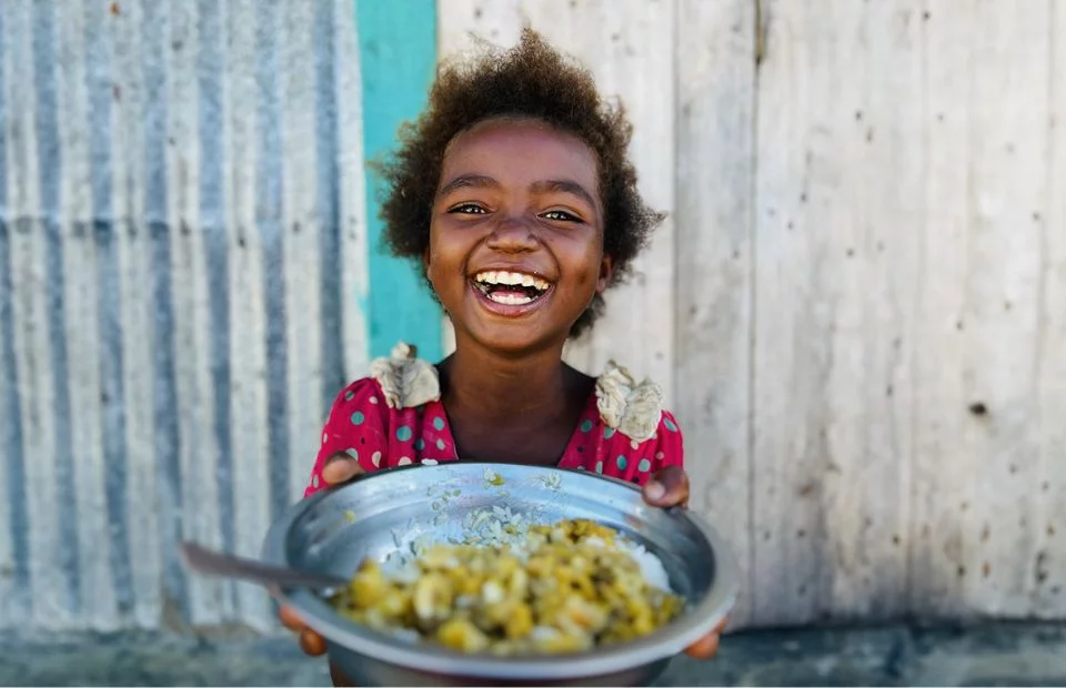 Im Bereich Ernährung erhalten Kinder in der Schule eine warme Mahlzeit – oft ihre einzige verlässliche Nahrung am Tag. Gleichzeitig unterstützen wir Familien mit Schulungen im nachhaltigen Anbau, damit sie lernen, sich selbst zu versorgen und langfristig aus der Armut herauszufinden.